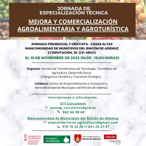 El pasado día 10 de noviembre se llevó a cabo la Jornada de Especialización Técnica denominada “Mejora y Comercialización Agroalimentaria y Agroturística” en la Mancomunidad