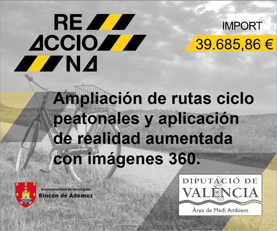 La Excma. Diputación Provincial de Valencia, por acuerdo de la Junta de Gobierno de fecha 19 de diciembre 2023, ha dispuesto lo siguiente: conceder a la Mancomunidad de Municipios Rincón de Ademuz subvención para la ejecución de vías ciclo peatonales de interés natural plan Reacciona 2023 por importe de 39.685,86€